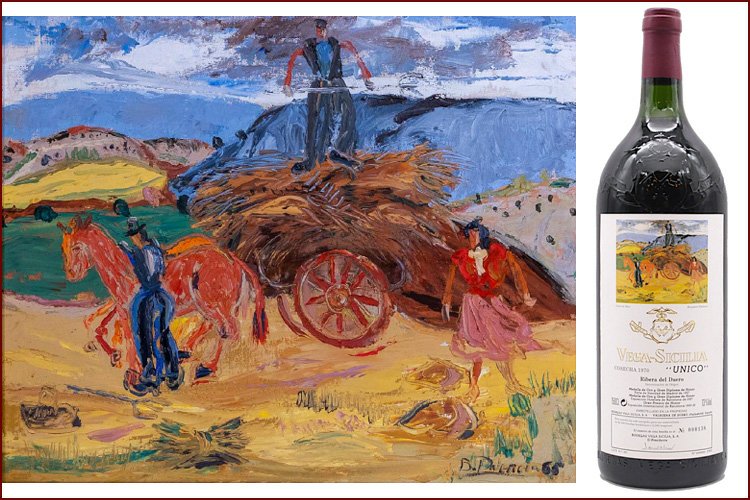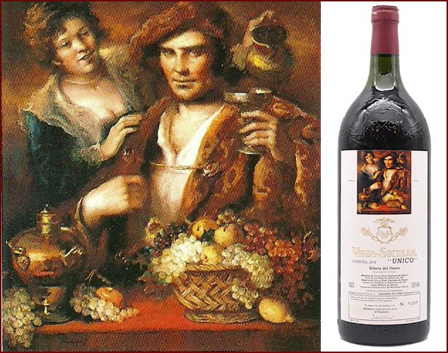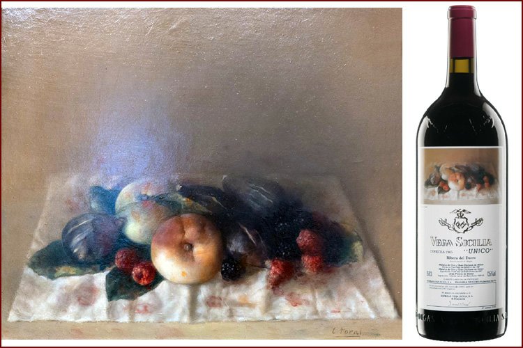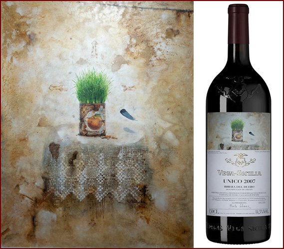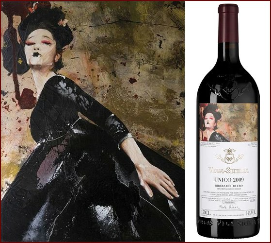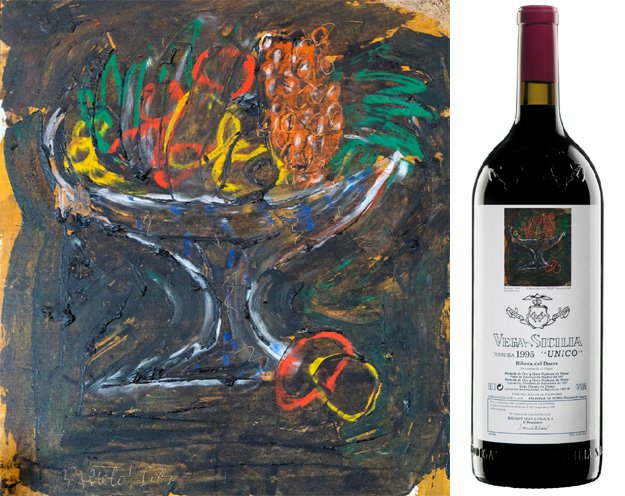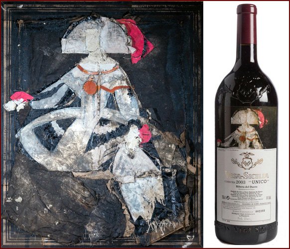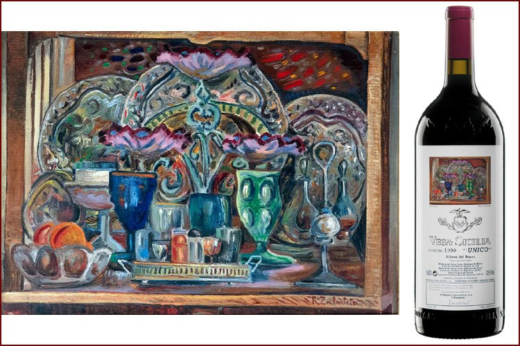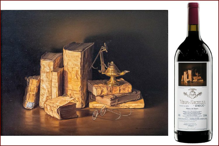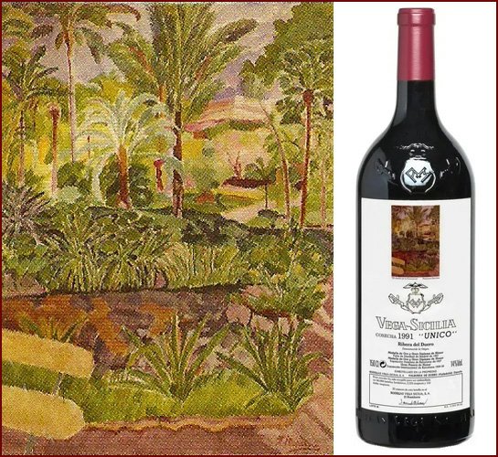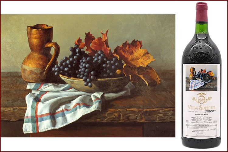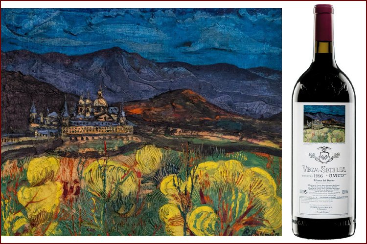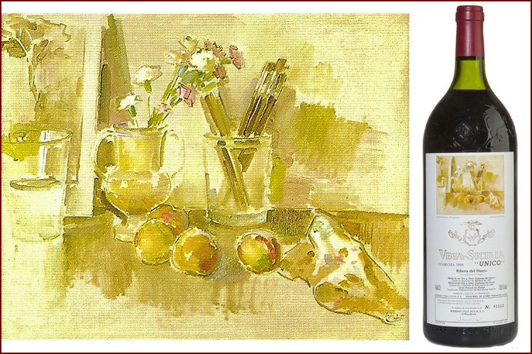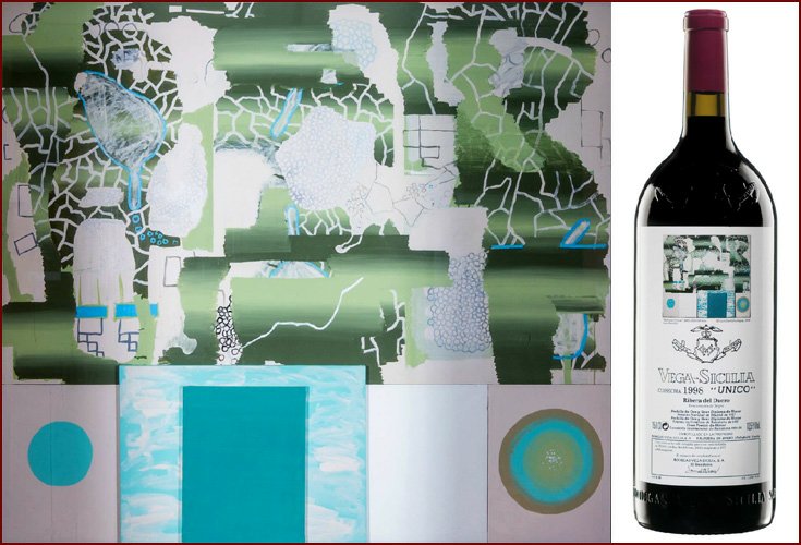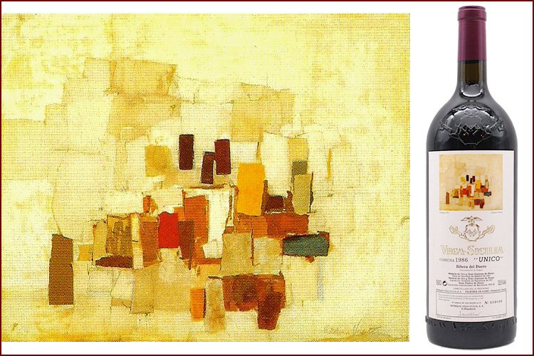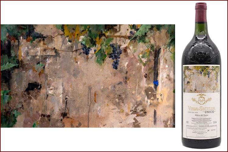 Художественные этикетки использовались для крупноформатных бутылок, производимых ограниченными сериями, что сразу придало проекту коллекционный характер. Для оформления выбирались произведения в основном испанских художников, чье творчество имело самостоятельную художественную ценность. Среди авторов картин, репродукции которых появлялись на этикетках Vega Sicilia Unico, были Антонио Васкес, Бенхамин Паленсия, Микель Барсело и другие значимые представители испанского искусства XX века. Их работы не иллюстрировали вкус вина напрямую, а создавали культурный контекст, в котором вино становилось частью более широкого художественного высказывания.