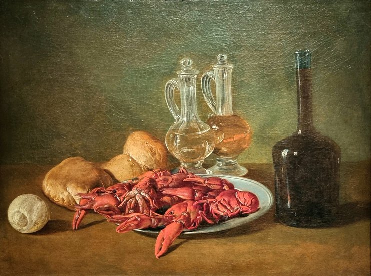 Джакомо Черути «Натюрморт с оловянной тарелкой, креветками, лимоном,