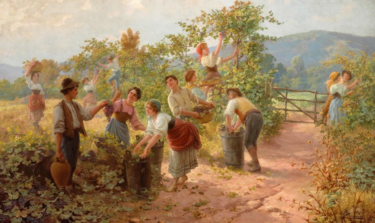 Сюжеты сбора винограда занимают заметное место в классической живописи. К этому мотиву обращались художники разных стран, видя в нем не только живописную сцену сельского труда, но и символ изобилия, завершенности природного цикла и гармонии человека с землей.