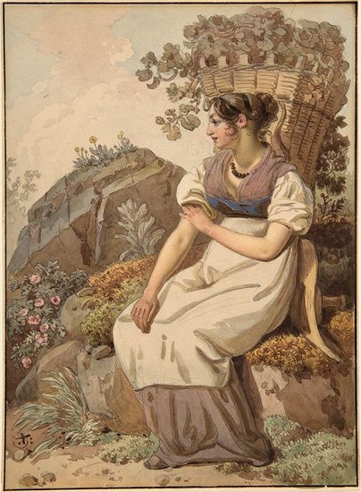 Вольфганг-Адам Тёпфер «Молодая женщина в Во после сбора винограда», 1821 г.